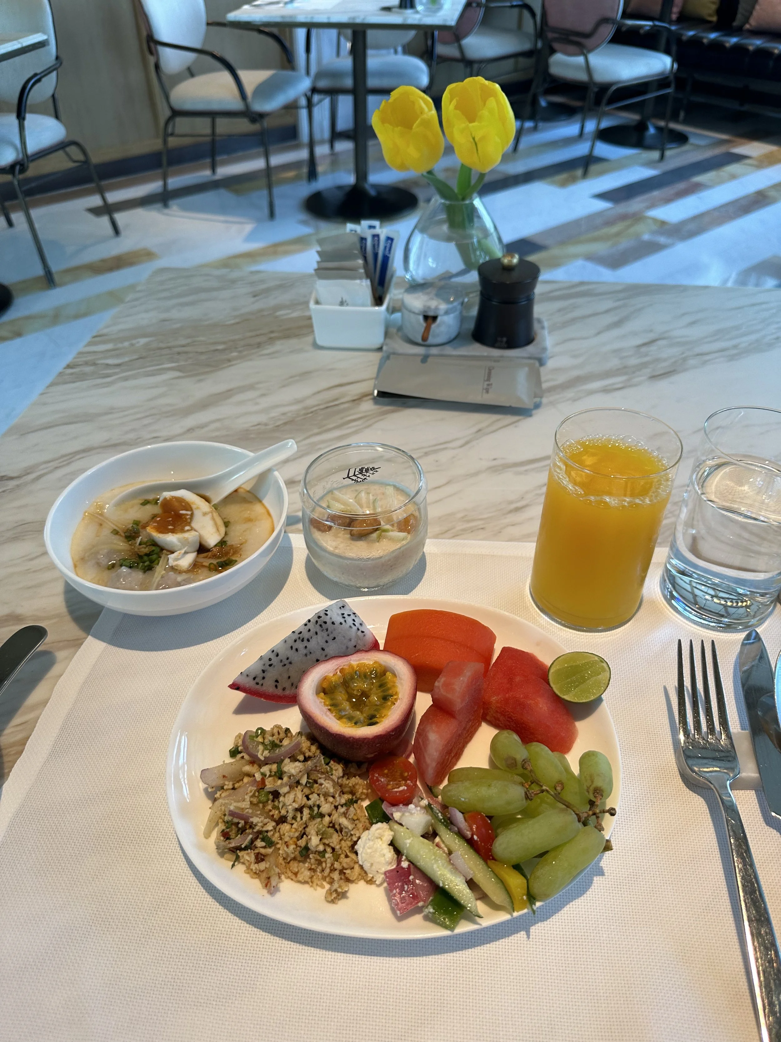 As true durian lovers, nothing feels more perfect than savoring fresh durian outdoors on the pier, watching boats drift by as the sun sets after a leisurely stroll and shopping at ICONSIAM. The hotel offers a wonderful variety of dining options, including a small, cute café called “Cafe Madeleine” located just below the Four Seasons Private Residences, perfect if you prefer less crowd.
